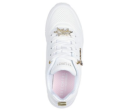 Detaliile aurii și accesoriul decorativ de pe șireturi adaugă un plus de stil, transformând acest model într-o alegere ideală atât pentru ținute casual, cât și pentru combinații sport-elegante.